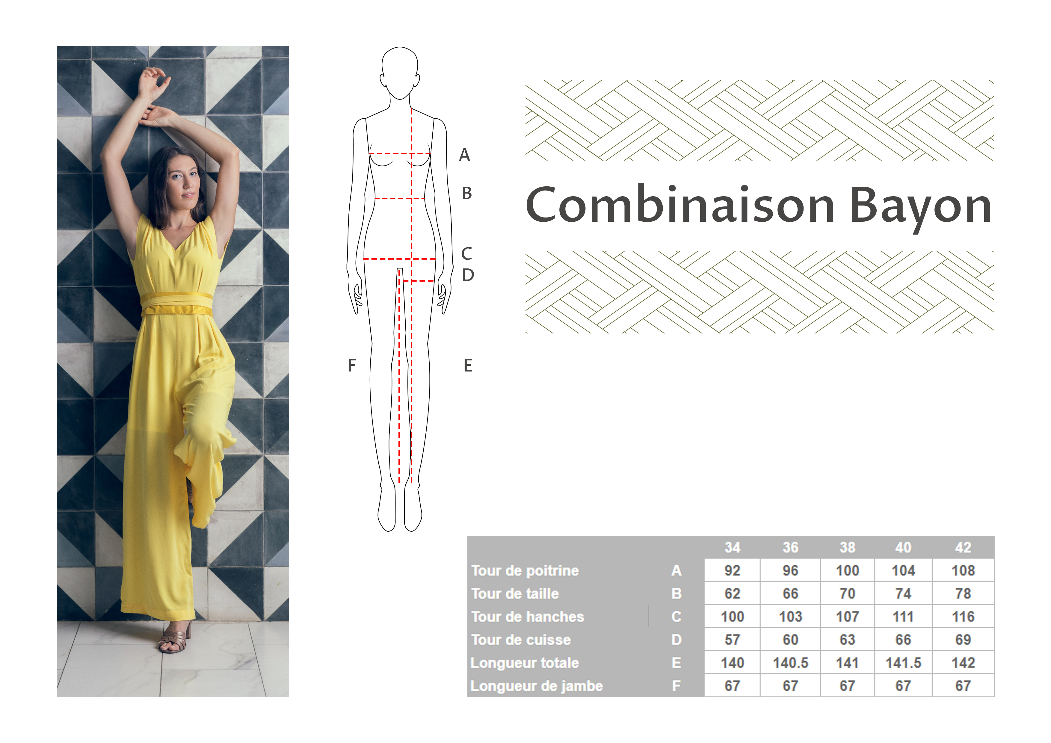 Le crèpe de coton et le coton utilisé pour la confection de la Combi-pantalon Bayon sont des tissus up-cyclés (issus de fin de rouleaux de l’industrie textile). Il sont achetés à moins de 3km de l’atelier de confection dans une démarche d’optimisation des transports.